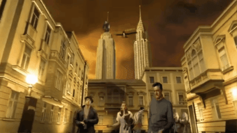It opens with a computer-rendered tour through a Hollywood populated by iconic movie characters. It looks like AI before there was AI. Little did we know then that this was the future of entertainment! All your favorite characters moving strangely around one place.