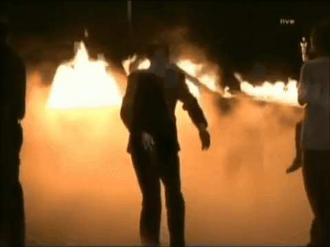 This is a much more elaborate production than Dolly Parton had. There’s cars and fire and fog and dancers representing the characters from the film.