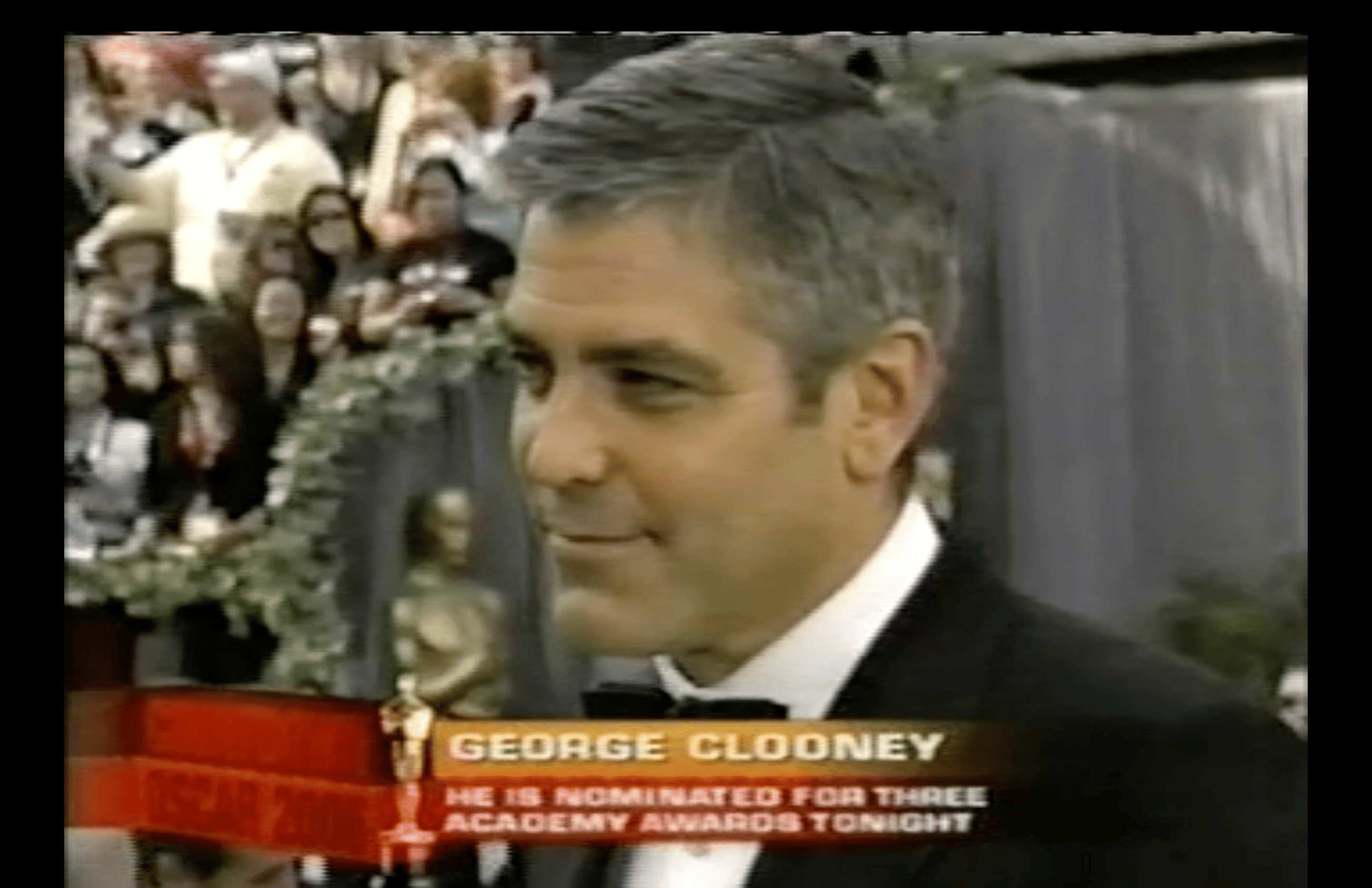 Vanessa Lachey, who now has a career locking single people in her dungeon and forcing them to mate, is another of the red carpet hosts. Her first interview is with George Clooney, who is nominated as a supporting actor for Syriana and for writing and directing Good Night, and Good Luck. He would not be as fortunate 20 years later.