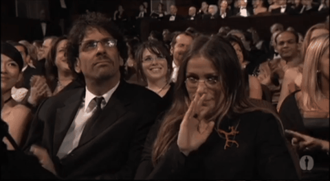 After that rousing segment, then Academy president Sid Ganis comes out to speak a bit more about the power of movies, and in particular the power of seeing movies in theaters. It’s a snooze and it sure as shit didn’t work, so let’s press on. Salma Hayek is the next presenter. She’s there to hand out best original score, and lemme tell ya, Salma Hayek striking a seductive pose and saying “Brokeback Mountain” is a thing to behold. It’s also nice that Itzhak Perlman performs selections of each nominated score, live on stage.