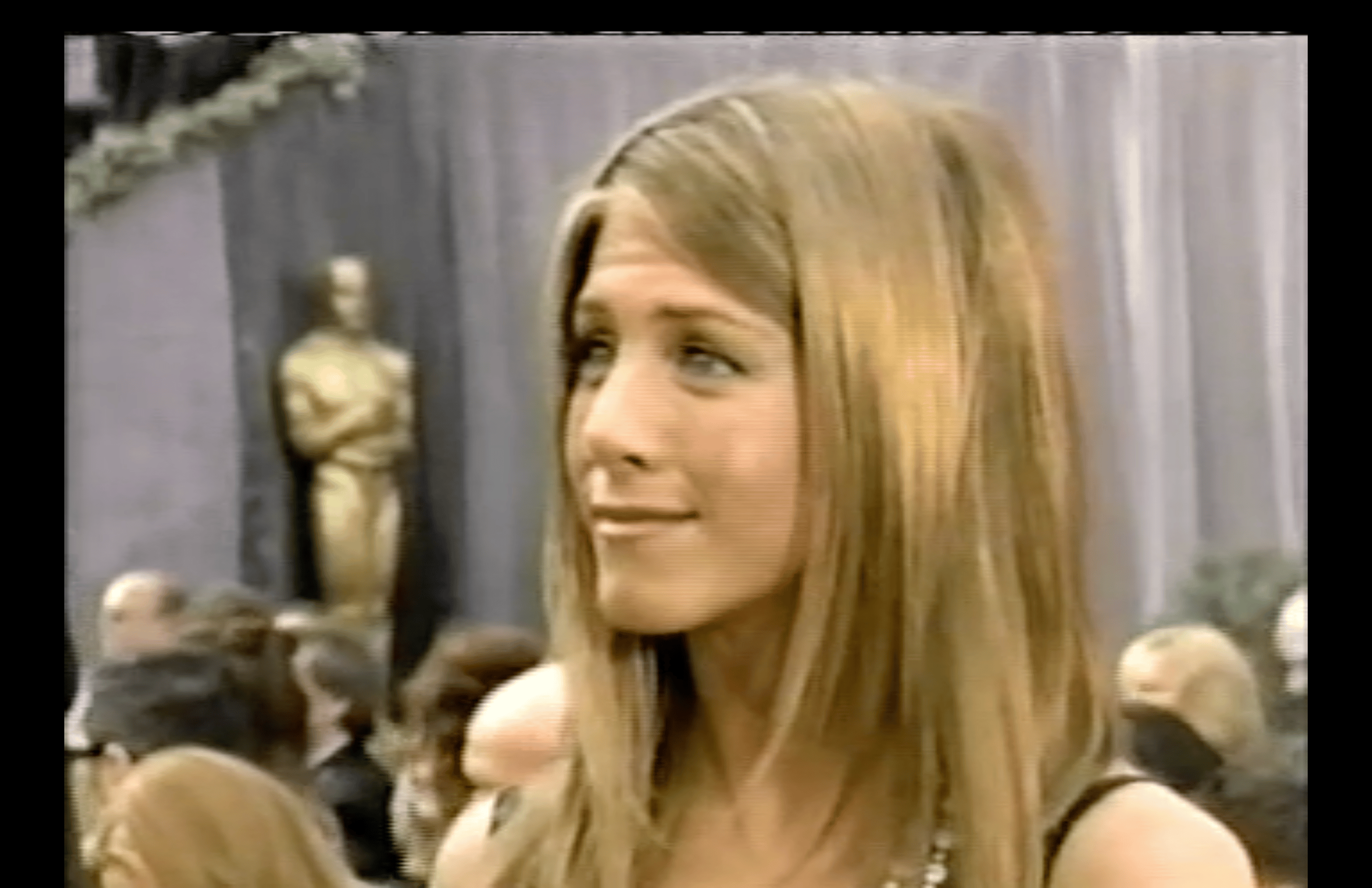 Then it’s back to Connelly, who is talking with Jennifer Aniston, who was coming off a real banner 2005. In that year, she had both Rumor Has It and Derailed, if you can believe it, two seismic films we are still talking about today. Though, she is ostensibly there to promote her upcoming Nicole Holofcener film Friends with Money, which is very good. Connelly asks Aniston which of her FWM co-stars she’s supporting that night: both Frances McDormand and Catherine Keener are nominees that evening. (McDormand for North Country, Keener for Capote.) Aniston doesn’t seem to love the question.
