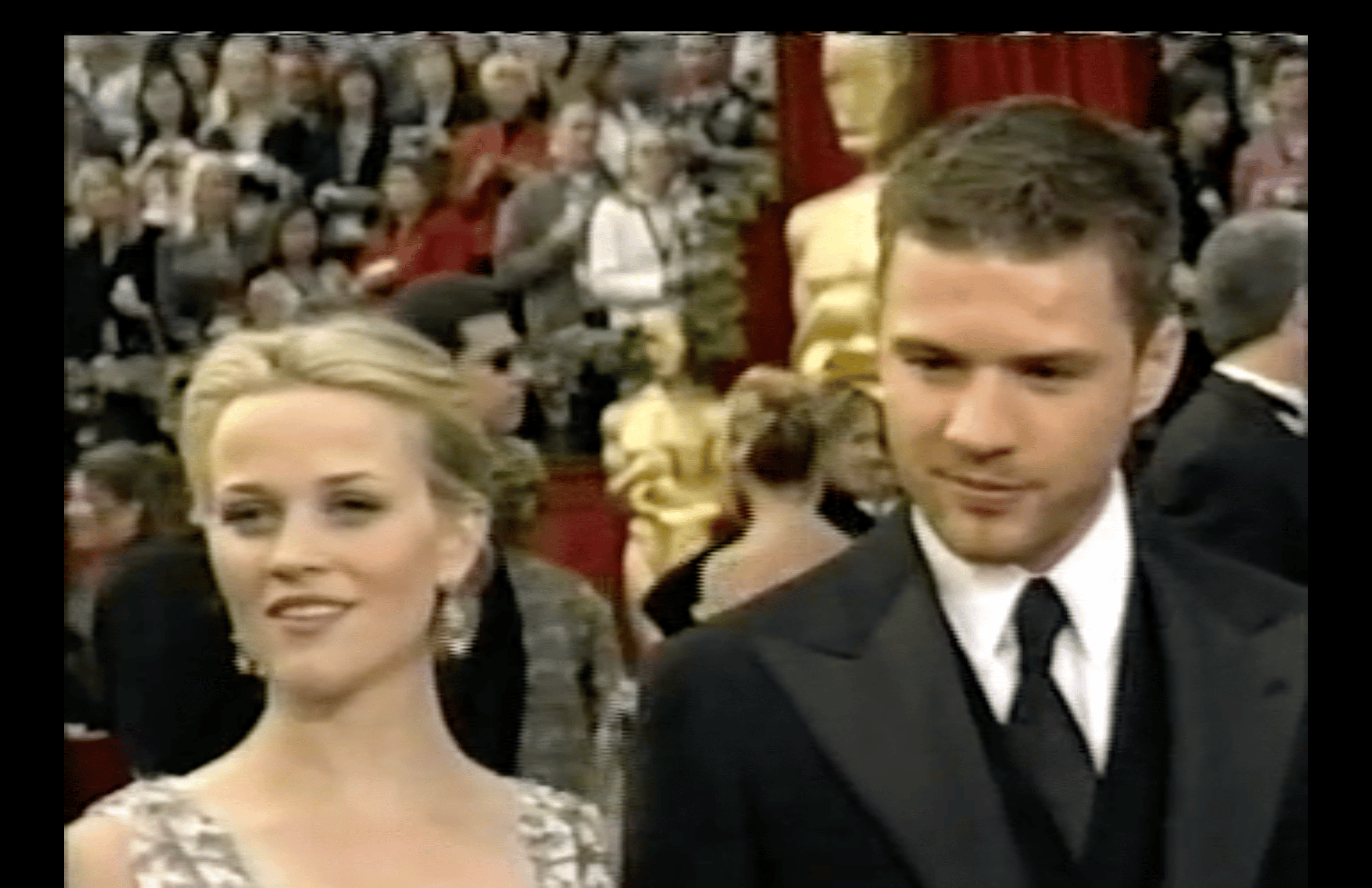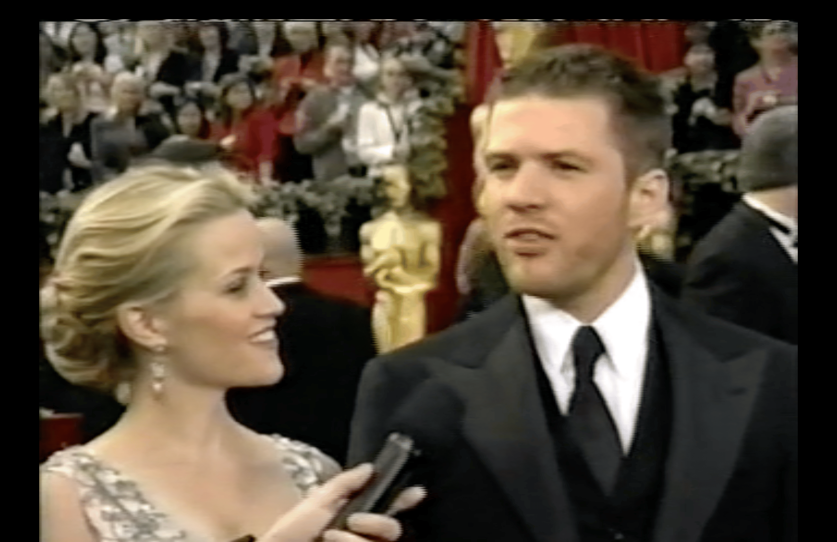 No, no, no, for some reason they’ve once again hired Billy Bush, sex pest scourge of the Oscars red carpet three years running now. He’s there creeping it up with Walk the Line nominee Reese Witherspoon and her then-husband Ryan Phillippe, who was in Crash. They were quite the Oscar duo that year! Bush’s first question is to Phillippe, asking if Witherspoon is, like June Carter Cash, “that strong, tough woman at home?”