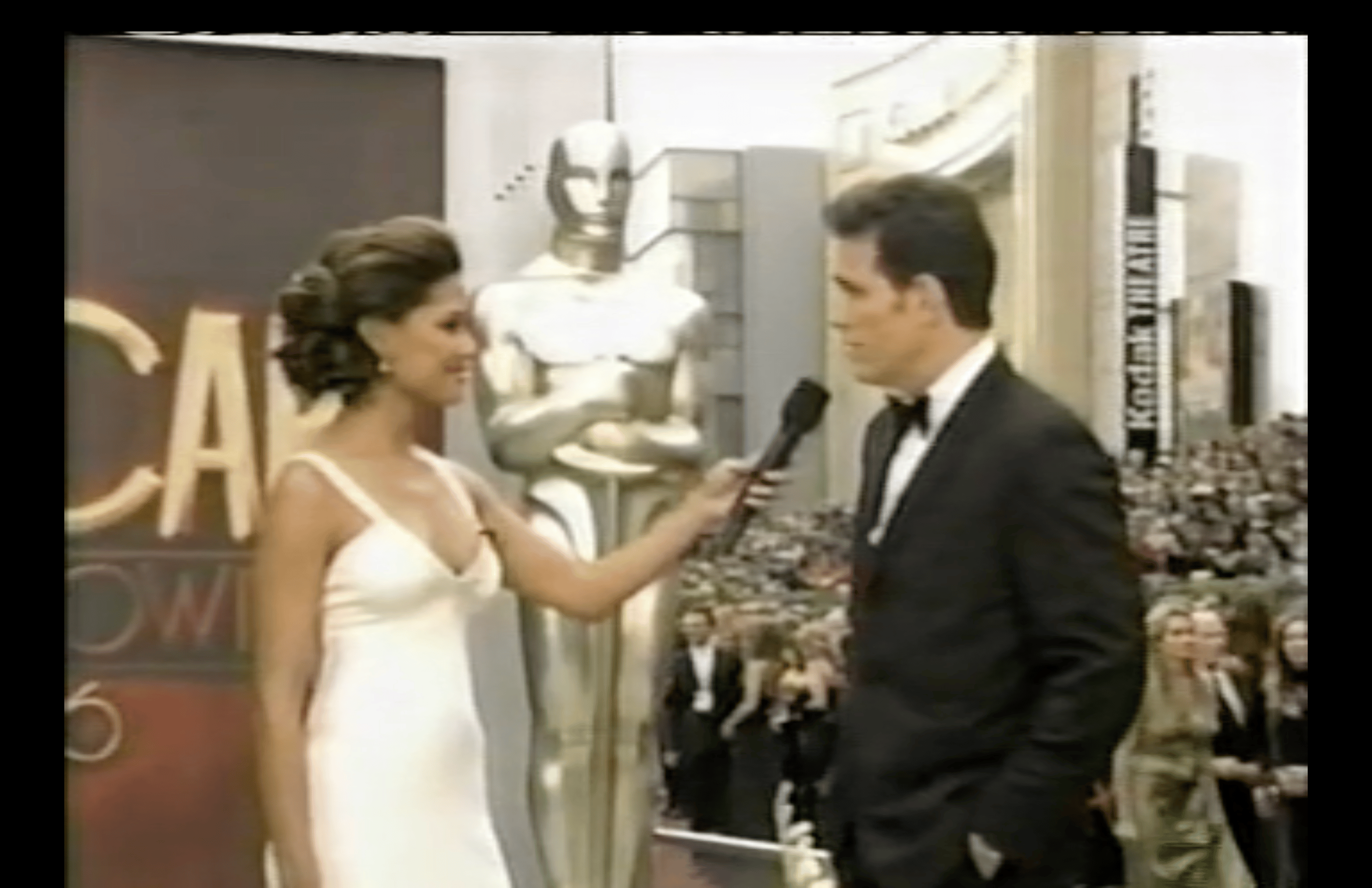 After that, Capote nominee Philip Seymour Hoffman is interviewed, but let’s move past that because it is sad. A different kind of sad is watching Billy Bush interview Good Night, and Good Luck lead David Strathairn and asking him, “Would you call yourself a star?” (The answer is no, by the way.)