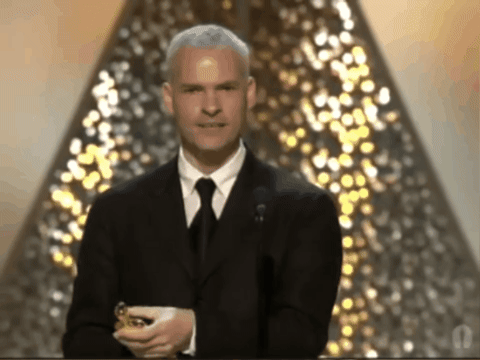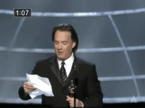 Okay! Only two more awards to go. We go to best director, presented by one Tom Hanks, who has recovered from his run in with those musicians, but has not recovered from his haircut.