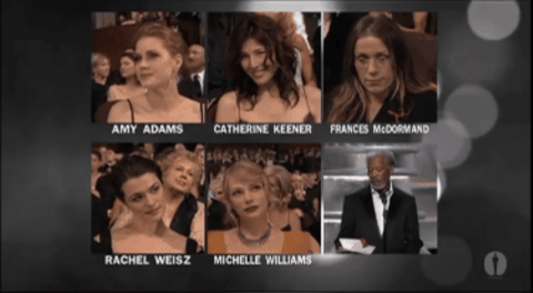 Foxx opens the envelope, and of course Witherspoon wins. She had won the Globe, the BAFTA, and the SAG in the lead up to the Oscars, so this was a foregone conclusion.